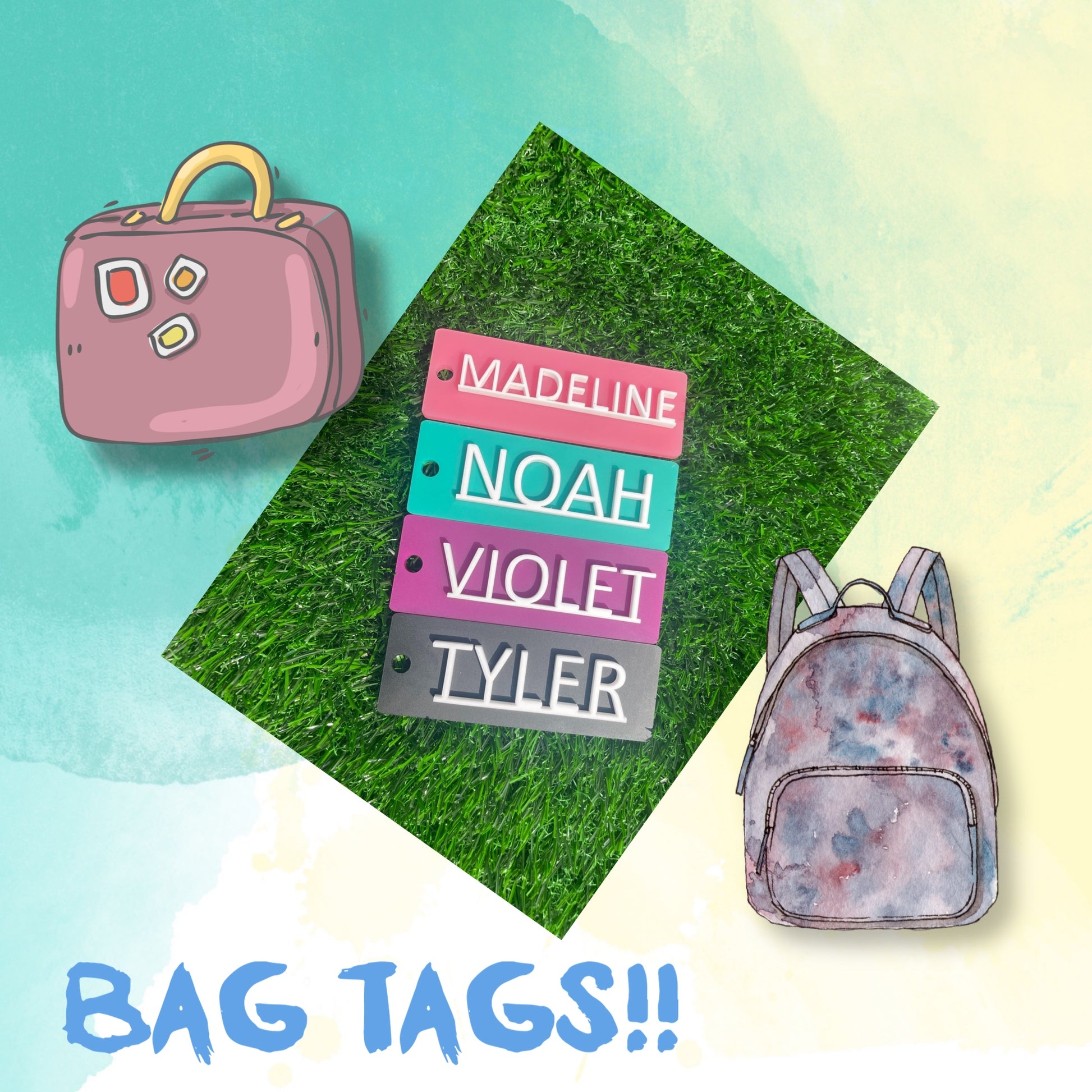 Acrylic Kids Backpack Tag | 3D Keychain | Name Tag | Bag Tag | Diaper Bag Tag | School Lunchbox Tag