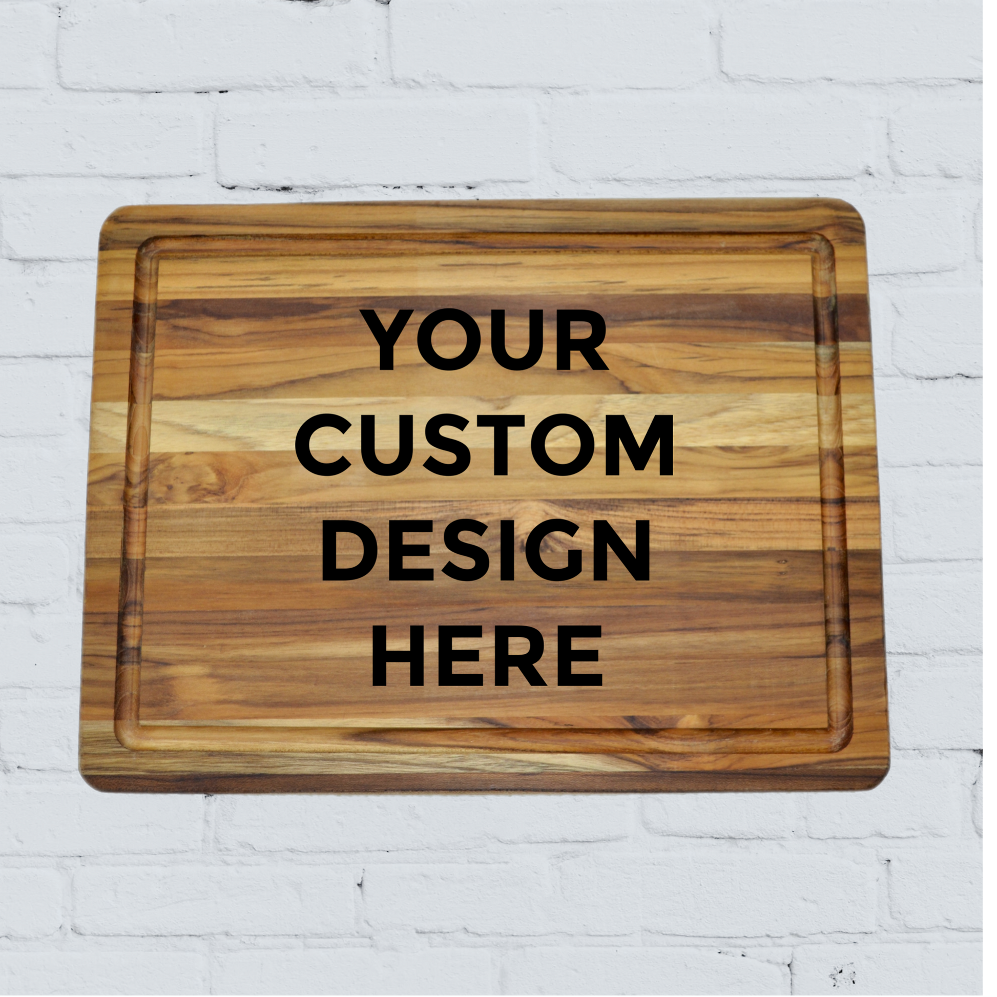 Create something truly unique! This beautiful, personalized teak wood cutting board makes a perfect gift for a housewarming, wedding, anniversary or other special occasion. The design of your choice is laser engraved onto the cutting board, making a fantastic memento to display in the kitchen.