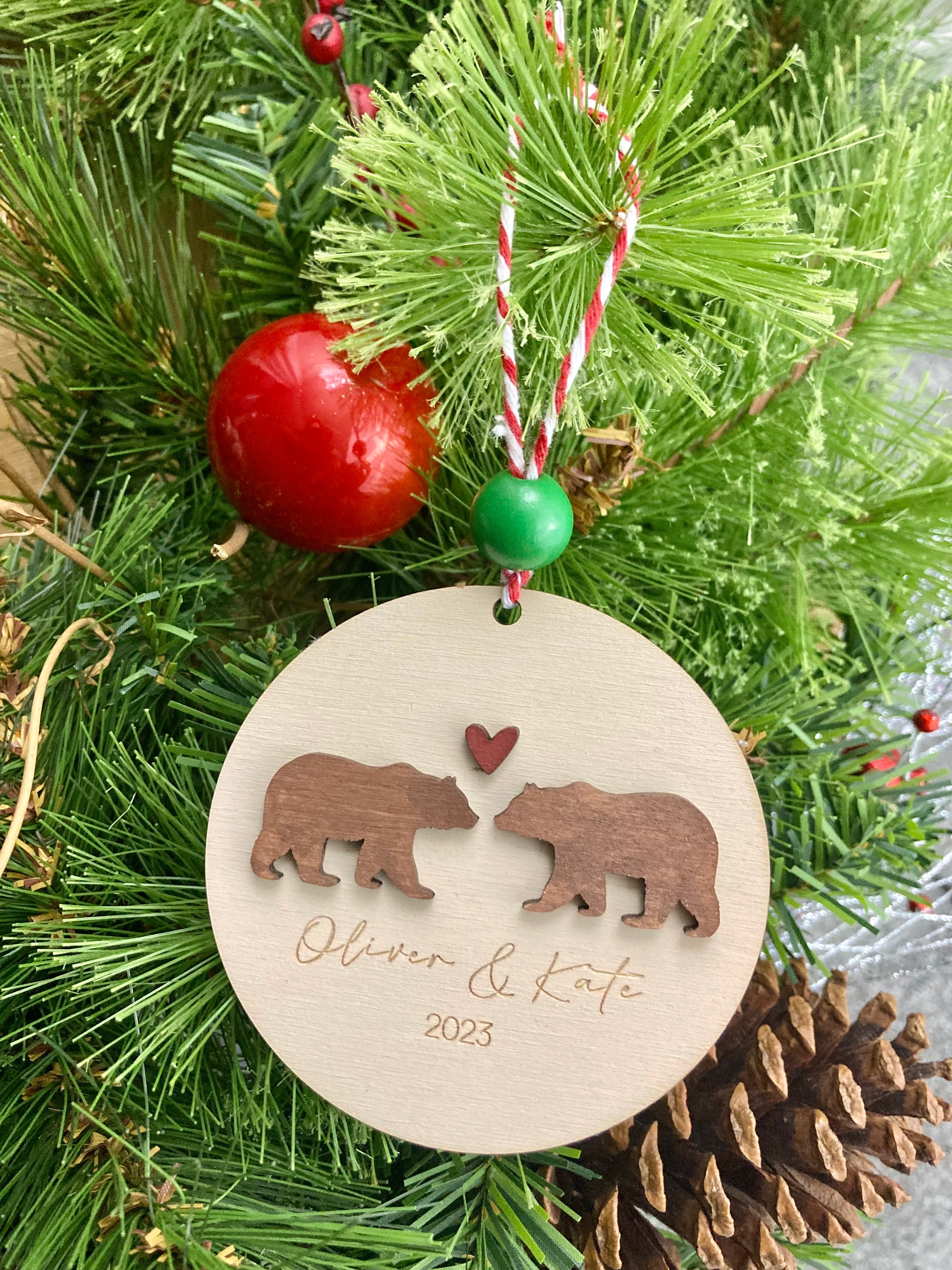 Celebrate the magic of love this holiday season with our couples Christmas ornament. Whether you're celebrating a first Christmas together or adding another chapter to your love story, this ornament becomes a timeless keepsake that will bring joy for years to come. Names are beautifully engraved with the year '2023'.