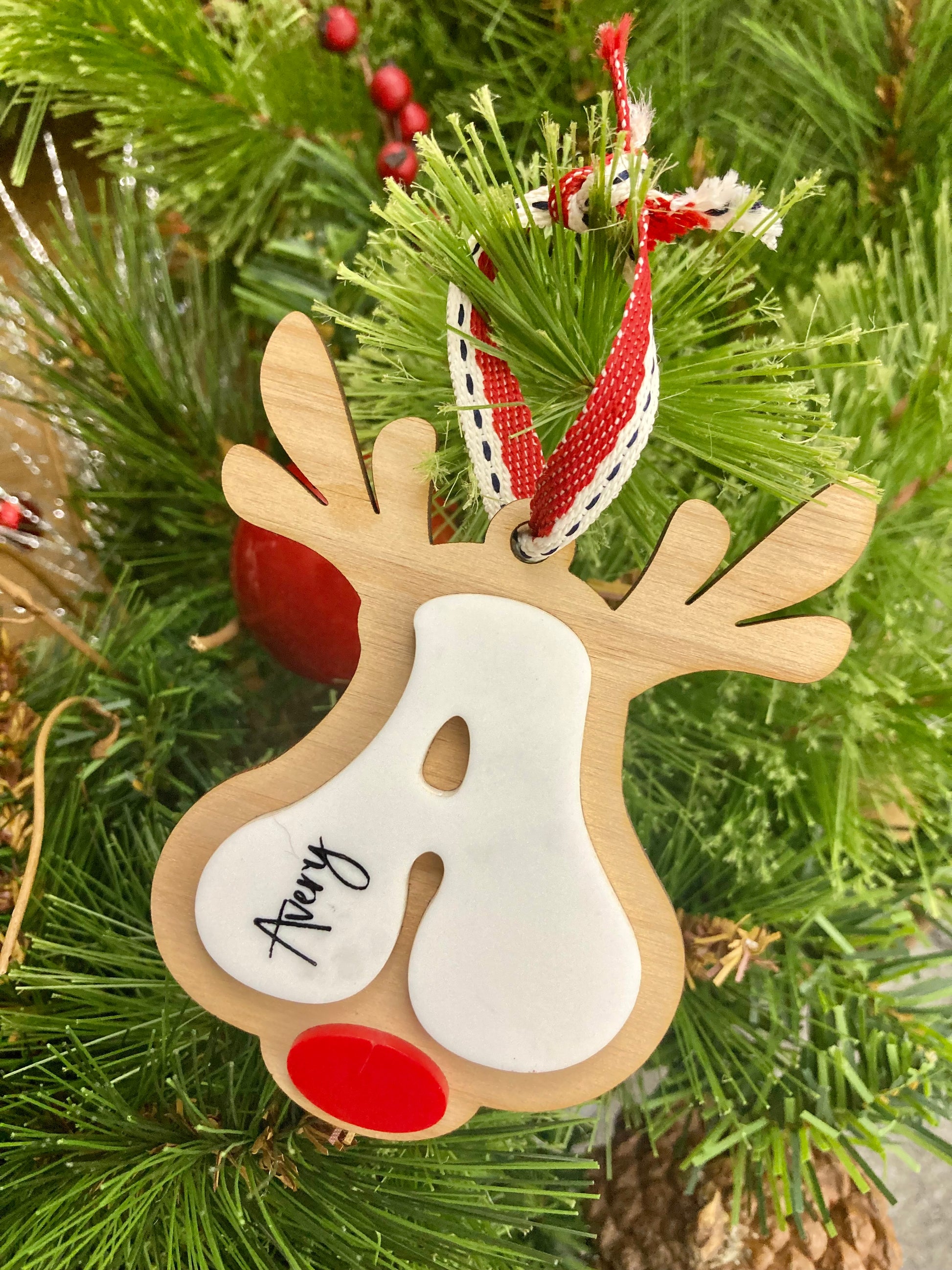 Personalized Boho Retro Reindeer Christmas Ornament | Stocking Hanger | Laser Engraved | Christmas Keepsake Ornament | Holiday Gift