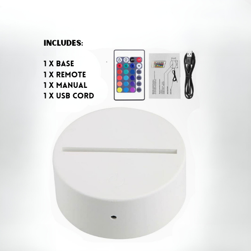 • Round, white LED base (approximately "3.65 x 3.65" x 1.5")