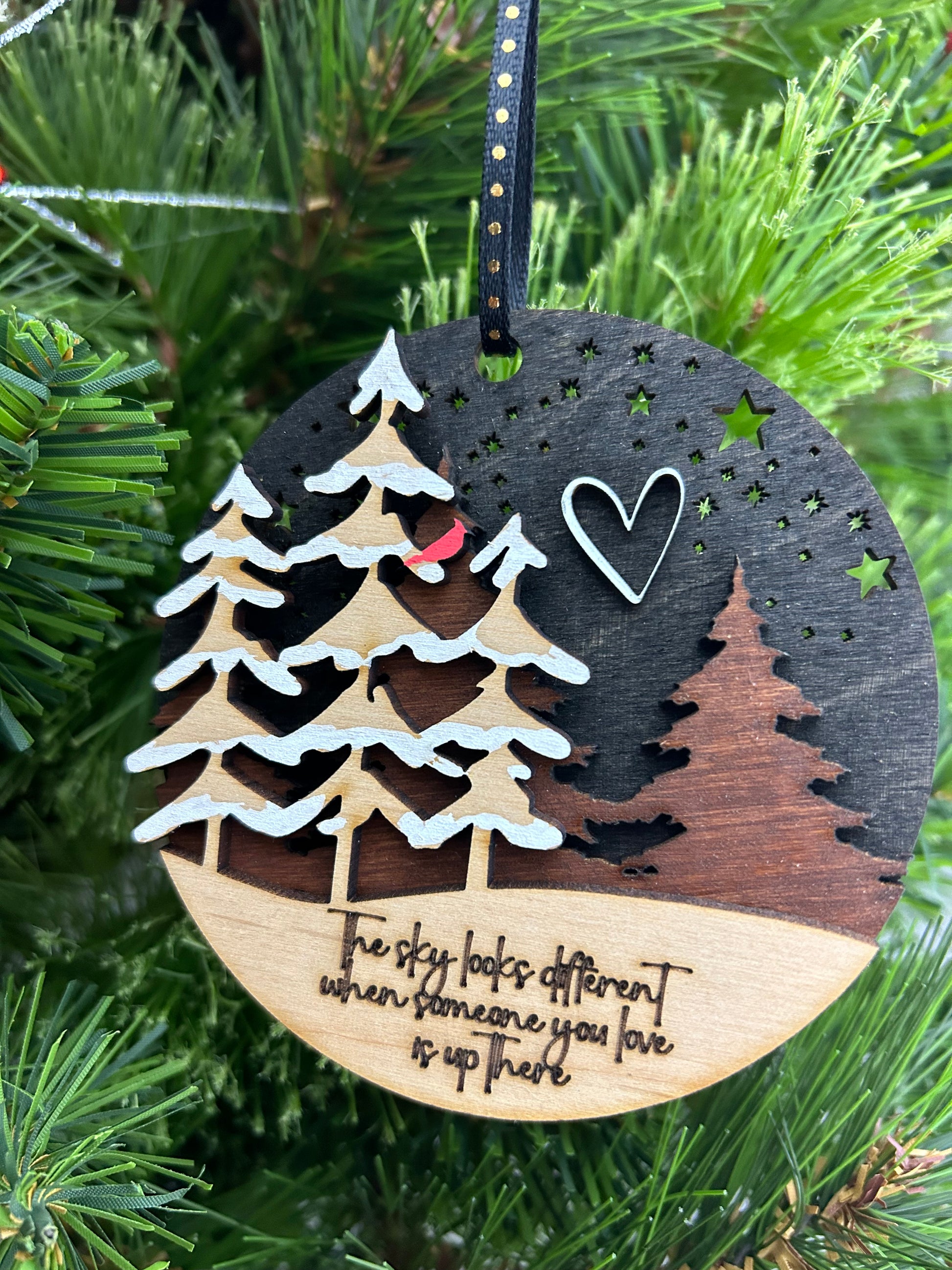 Personalized Memorial Ornament | Laser Engraved Wood Ornament | The Sky Looks Different | Christmas Keepsake Ornament | Holiday Gift