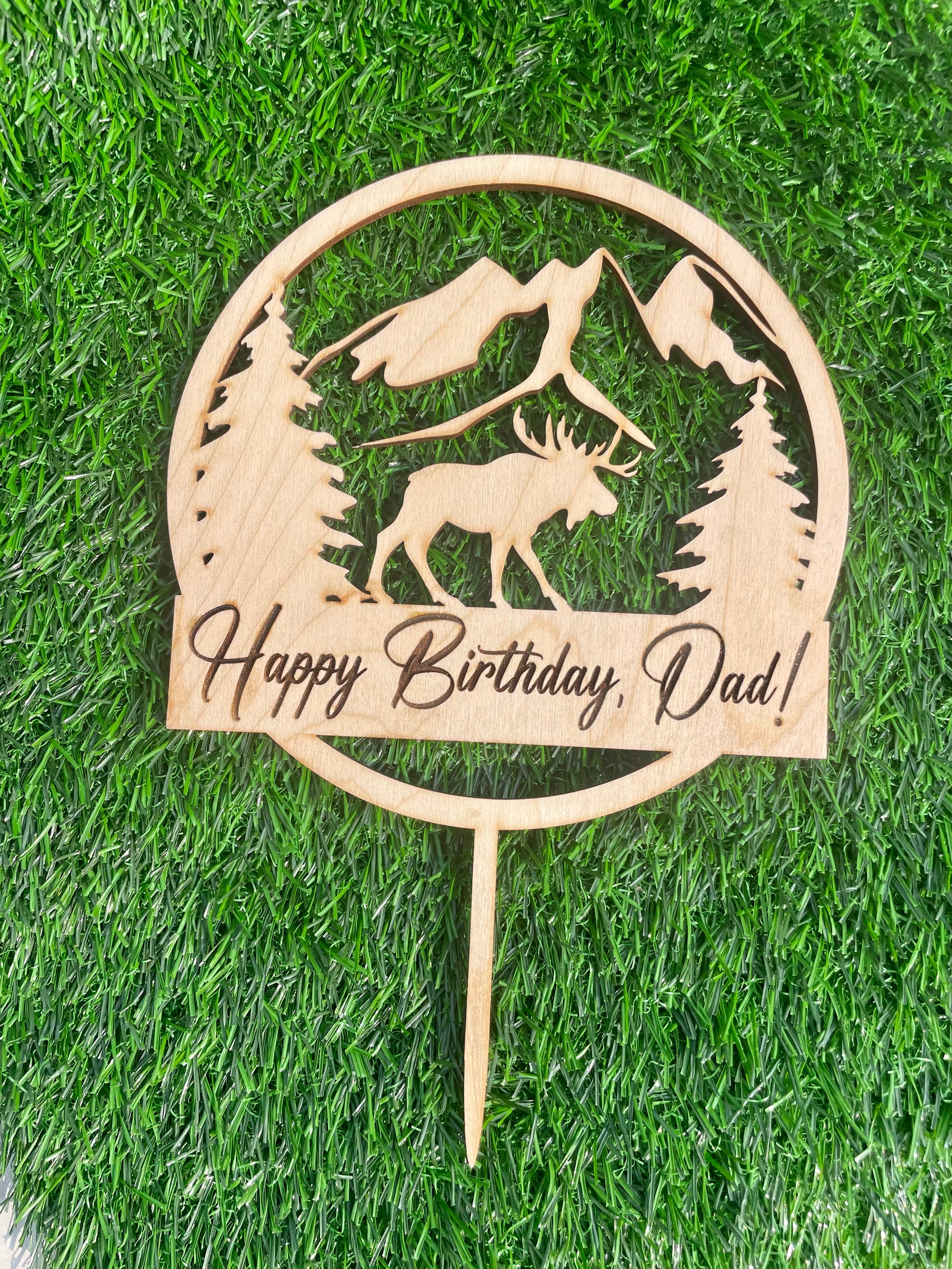 Personalized Happy Birthday Wood Moose Cake Topper | Special Occasion Cake Topper | Animal Cake Topper