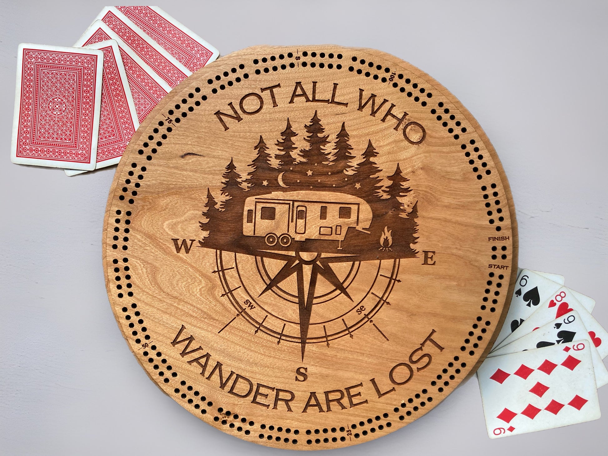 Embark on a journey of strategic gameplay with our laser engraved cribbage board - a true masterpiece. Precisely crafted with the words "Not all who wander are lost," our gameboard is a celebration of the adventurous spirit. The intricate design reflects the winding paths of life, making it the perfect companion for those who appreciate the road less traveled.