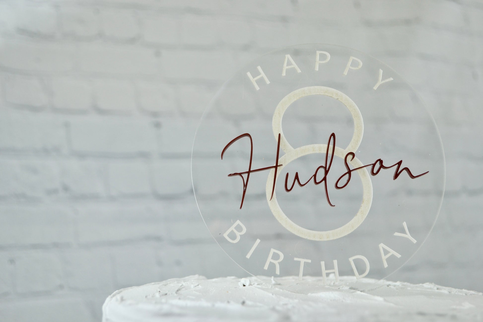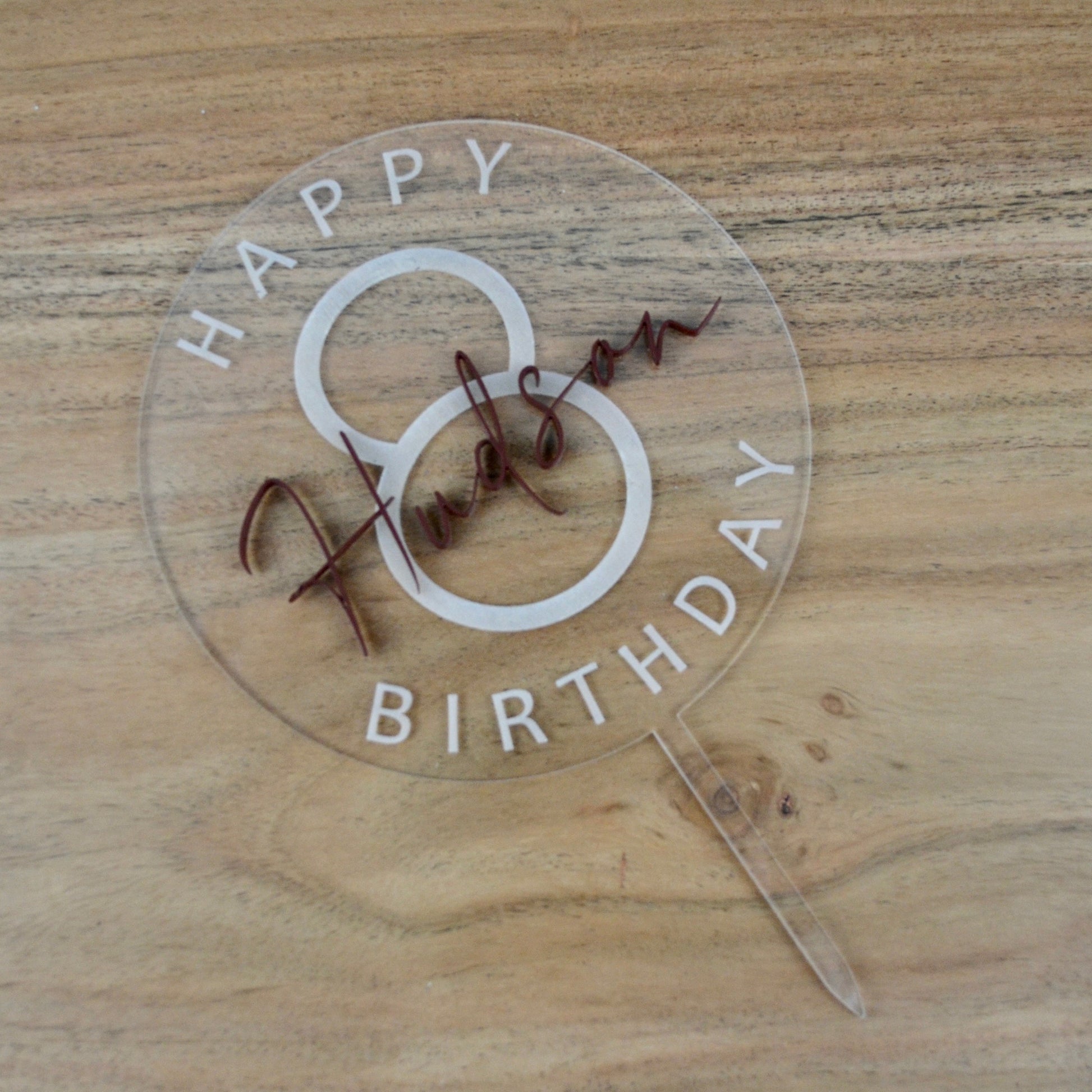 Personalized Acrylic Birthday Cake Topper | Age Cake Topper | Happy Birthday Round Disc Topper