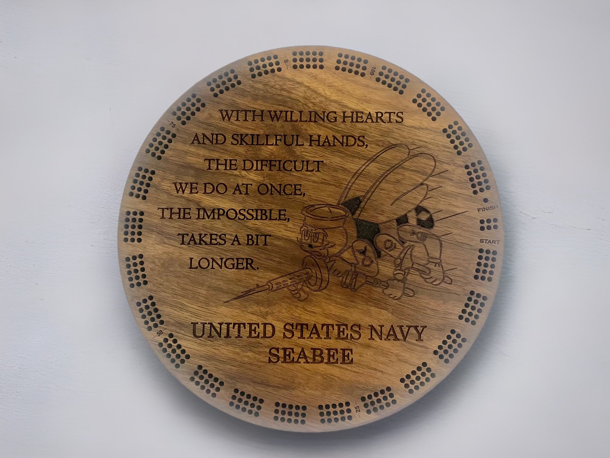 Personalized Navy Seabee Wood Cribbage Board | Laser Engraved Cribbage Board | Retirement Gift