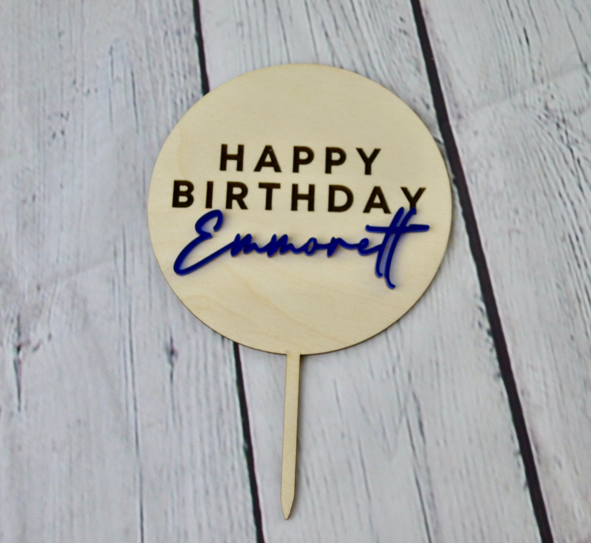 Personalized Wood Acrylic Birthday Cake Topper | Name Cake Topper | Happy Birthday Round Disc Topper