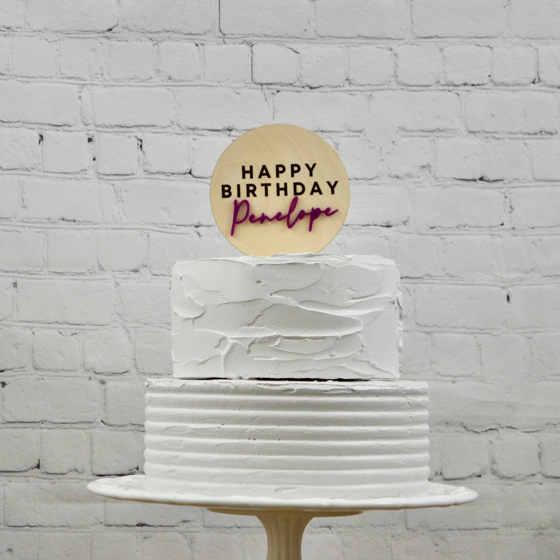 This simple, yet elegant wood cake topper will add the perfect touch to the top of your birthday cake. Choose from multiple acrylic colors for name layer or engrave name only.